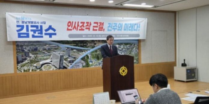 [경상뉴스=김영수 기자]진주삶연구(소장 김권수 전 경남개발公 사장)는 16일 오전 11시 진주시청 브리핑룸에서 최근 드러난 진주시 공무원 인사시스템 조작에 대한 개혁을 촉구하며, 인사 비위는 조직 전체의 신뢰성을 훼손하는 구조적 위기라고 지적했다.
