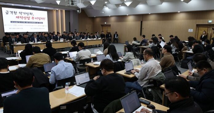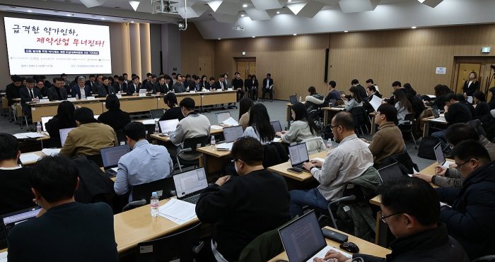 ▲한국제약바이오협회 약가 인하 제도 관련 기자회견