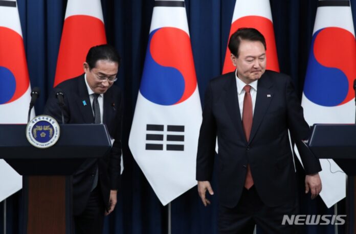 니혼게이자이신문은 “7일 한일 정상회담에 앞서 한국 정부 측은 기시다 총리 자신이 ‘반성’과 ‘사죄’ 등의 문구를 담은 선언문을 직접 읽어달라고 요청했다”고 8일 보도했다.