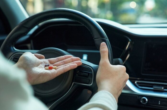 ▲운전대 앞에서 약물을 손에 쥔 모습. 게티이미지뱅크