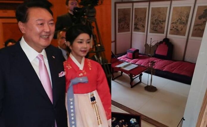 김 의원은 “‘왕의 의자’에 앉았던 김건희가 명성황후의 침실까지 들어갔다. 국가 유산의 사유화를 넘어선 국보 농단 행위”라고 비판했다.