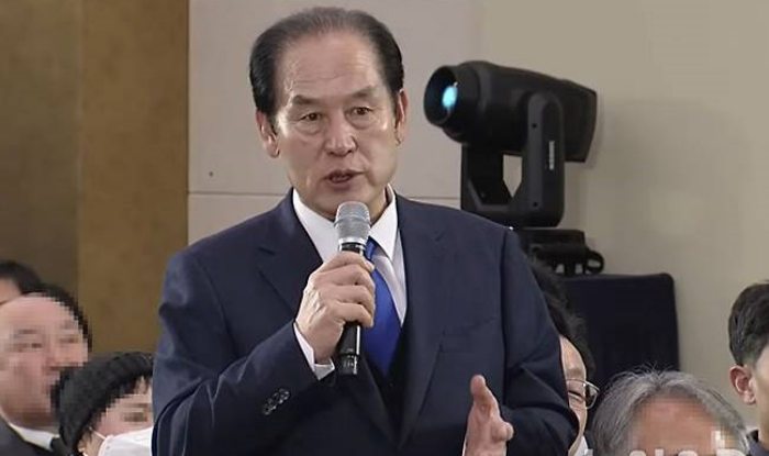 ▲ 김희수 전남 진도군수가 지난 4일 해남문화예술회관에서 열린 광주·전남 행정통합 ‘찾아가는 타운홀미팅’에서 발언을 하고 있다. (사진 = 목포MBC 유튜브 갈무리) 2026.02.04.