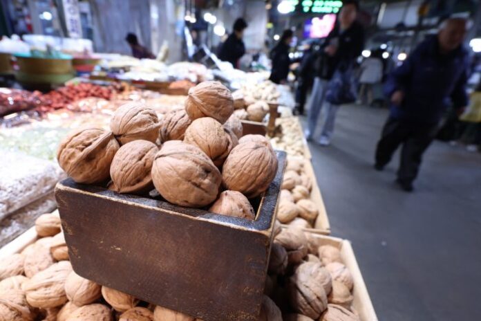 정월대보름을 앞둔 지난 1일 오후 서울 동대문구 경동시장에서 호두와 땅콩 등 부럼이 판매되고 있다. 뉴시스