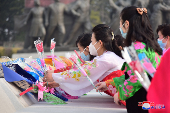 ▲북한이 3·8 국제부녀절(세계 여성의 날)을 맞아 주민들이 김일성·김정일 동상에 헌화했다고 조선중앙통신이 9일 보도했다. 연합뉴스-