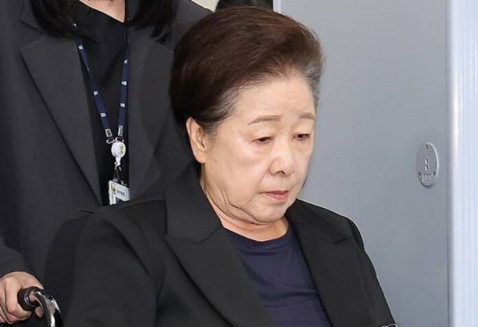 윤석열 정권과 통일교가 연관된 ‘정교유착 국정농단’ 의혹을 받는 한학자 통일교 총재가 22일 서울중앙지법에서 구속 전 피의자 심문(영장실질심사)을 마친 뒤 법정을 나서고 있다. 2025.9.22 [공동취재]