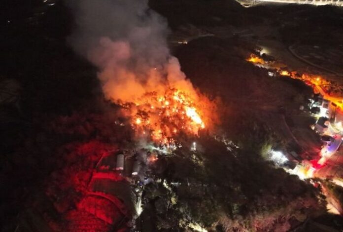 ▲22일 새벽 울산 중구 성안동 야산에서 발생한 산불이 번지고 있다. 이곳 주불은 3시간31분 만에 잡혔다./ 연합뉴스