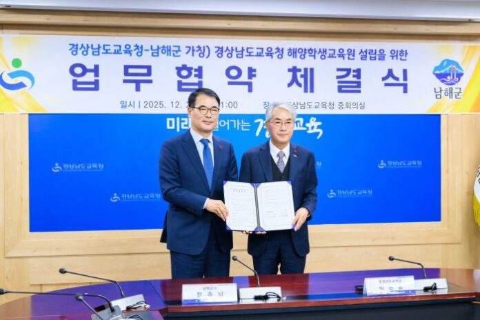 Home문화/교육/공연/스포츠교육경남도교육청-남해군, 해양학생교육원 설립을 위한 협약 체결