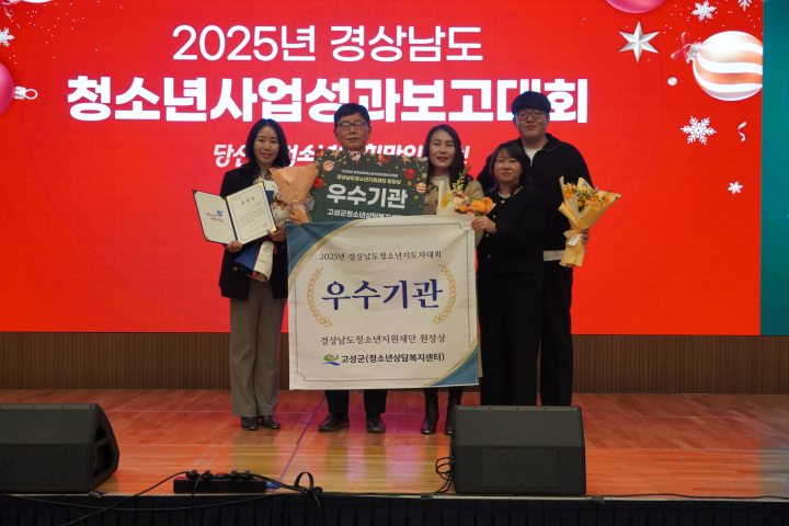[경상뉴스=김용수 대기자]경남 고성군(군수 이상근)은 12월 5일, 경상남도가 주최하고 경상남도청소년지원재단이 주관한 ‘2025년 경상남도 청소년사업 성과보고대회’에서 관내 고성군청소년상담복지센터(센터장 이진만)가 ‘우수기관상’을 수상했다고 밝혔다.
