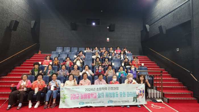 [경상뉴스=김용수 대기자]경남 고성군(군수 이상근)은 29일 늘배움학교 학습자들을 대상으로 씨지브이(CGV)고성 작은영화관에서 창의 체험활동(영화관람)을 진행했다고 밝혔다.