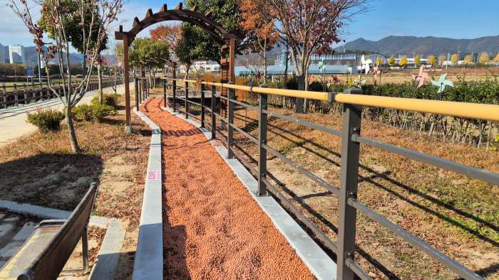 특히 미끄럼 사고 방지를 위해 안전난간을 설치하고, 산책 후 발을 깨끗이 씻을 수 있도록 산책길 한편에 세족시설을 마련해 위생은 물론 누구나 쾌적하게 황토볼 산책을 즐길 수 있도록 했다.