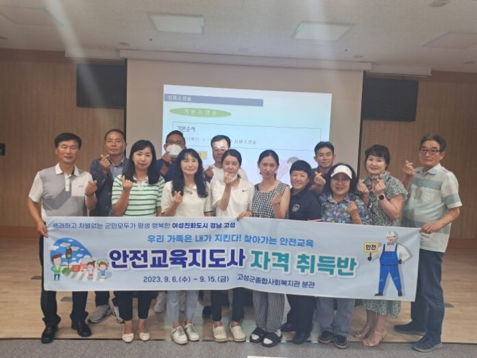 [경상뉴스=김용수 대기자]경남 고성군(군수 이상근)은 9월 6일 고성군종합사회복지관 분관에서 교육생 12명을 대상으로 ‘안전교육지도사’ 자격증 교육과정을 개설했다