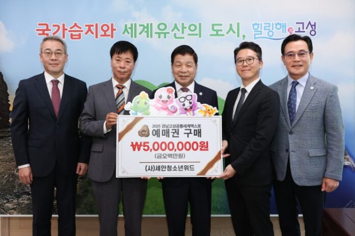 [경상뉴스=김용수 대기자]경남 고성군 유스호스텔 민간위탁 운영사인 사단법인 세안청소년위드(대표이사 박지훈)가「2025 경남고성공룡세계엑스포」의 성공적인 개최를 위해 9월 24일 500만 원 상당의 예매권을 구매했다.