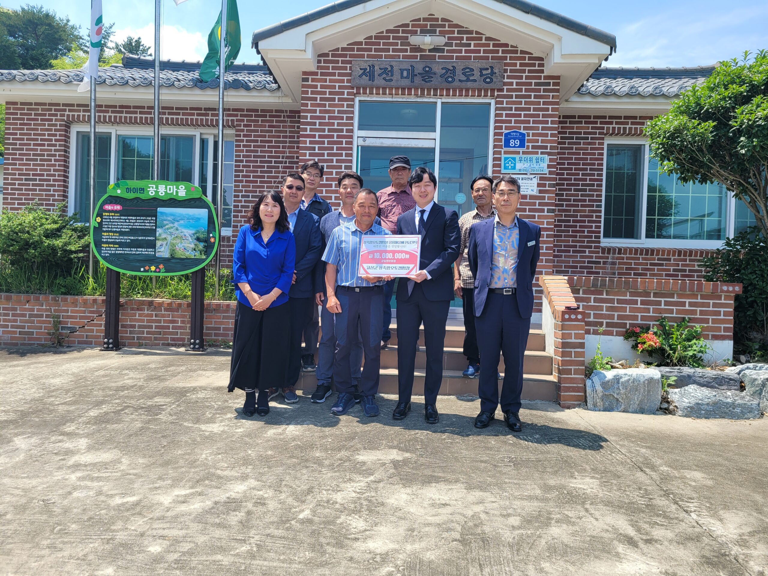 [경상뉴스=김용수 대기자]경남 고성상족암오토캠핑장(대표 전준영)은 6월 8일 공룡마을회관을 방문해 성금 1,000만 원을 전달했다.