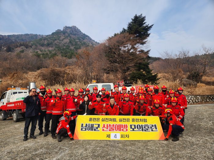 남해군 산불 진화인력은 평상시에도 산불 발생에 대비해 매주 1회 정기적인 모의훈련을 실시하고 있으며, 특히 봄철 산불 조심 기간을 앞두고 훈련 강도를 높이고 있다.