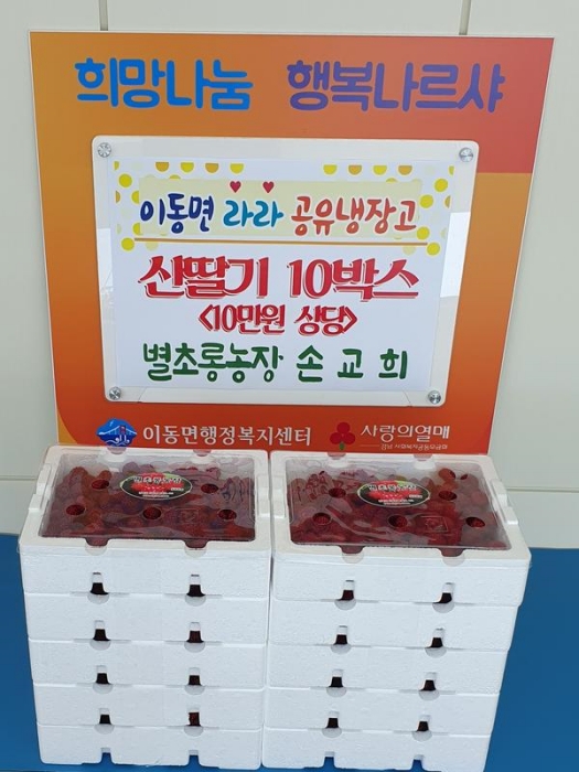 [경상뉴스=이경용 기자]경남 남해군 이동면행정복지센터는 지난 7일 삼동면 소재 별초롱농장(대표 손교희)에서 산딸기 10박스를 이동라라공유냉장고에 기탁했다고 밝혔다.