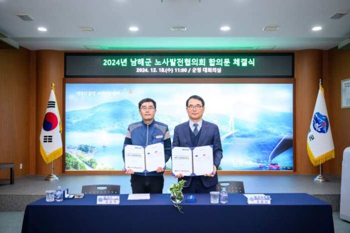 [경상뉴스=이경용 기자]경남 남해군과 전국공무원노동조합 남해군지부가 원만한 노사관계 발전을 위한 합의문을 체결했다.