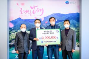 전도어촌체험휴양마을 박동종 위원장은 “아이들의 밝은 미래가 곧 남해의 미래라고 생각한다. 적은 금액이지만 후학들에게 좋은 자양분이 되었으면 한다. 며 기탁 이유를밝혔다.
