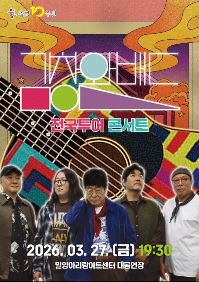 [경상뉴스=김용수 대기자]경남 밀양문화관광재단(이하 재단)은 오는 27일 밀양아리랑아트센터 대공연장에서 재단 출범 10주년을 기념하는 특별 공연 ‘김창완밴드 전국 투어 콘서트’를 개최한다.