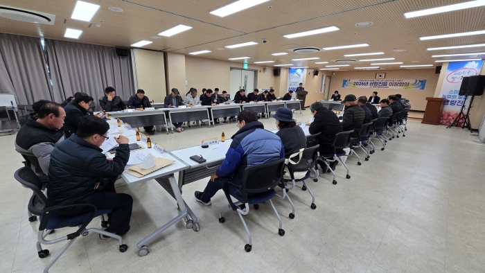 ▲밀양시 삼랑진읍행정복지센터 다목적실에서 열린 2026년 첫 삼랑진읍 이장협의회 회의 모습