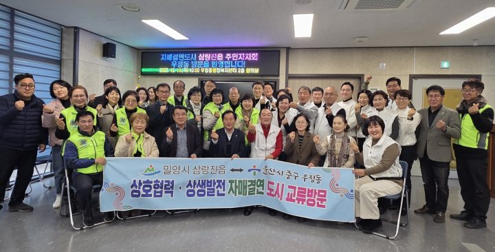 [경상뉴스=김용수 대기자]경남 밀양시 삼랑진읍(읍장 김주용)은 11일 삼랑진읍 주민자치회(회장 김태훈)와 함께 자매결연도시인 울산시 중구 우정동을 방문했다.