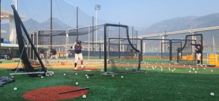 ▲전지훈련 중인 야구 선수들 모습