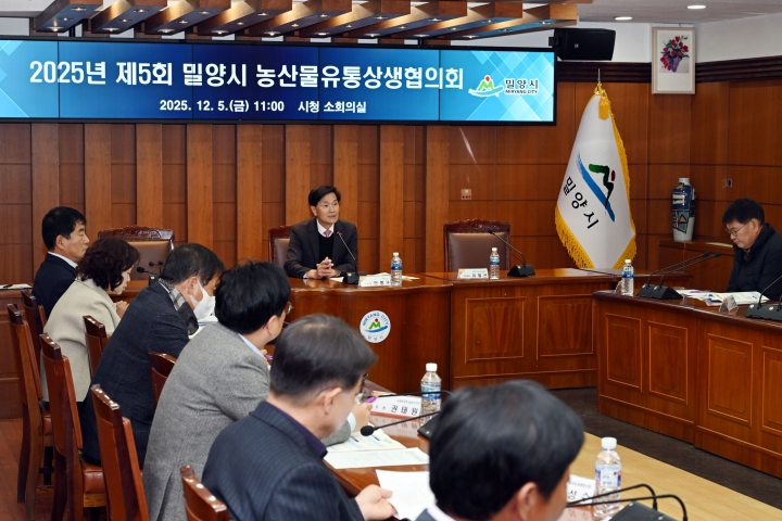 [경상뉴스=김용수 대기자]경남 밀양시(시장 안병구)는 5일 밀양시청 소회의실에서 ‘2025년 제5회 밀양시 농산물유통상생협의회’를 개최했다.