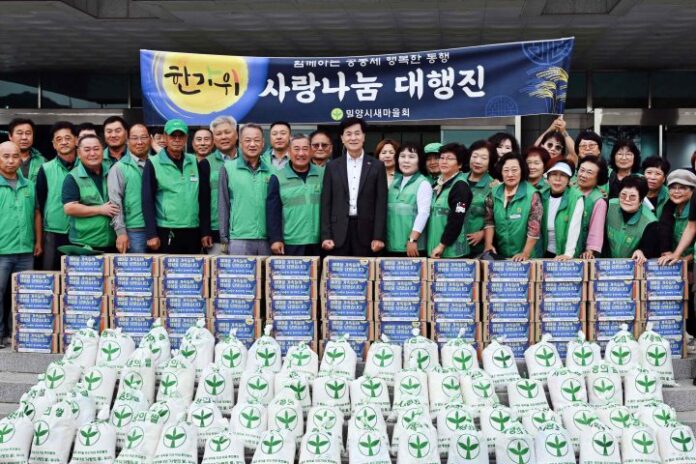 [경상뉴스=김용수 대기자]경남 밀양시새마을회(회장 이선동)는 2일 시청 중앙현관 앞에서 읍·면·동 협의회장과 부녀회장, 새마을문고 회원 등 30여 명이 함께한 가운데 ‘한가위 사랑나눔 대행진’ 행사를 열었다.