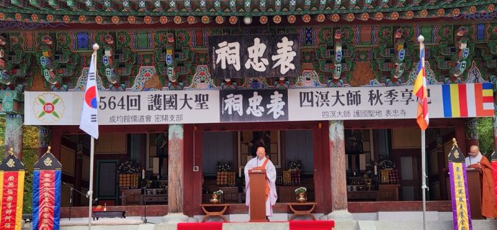 ▲25일 밀양시 단장면 표충사에서 사명대사 추계향사가 봉행되고 있다.