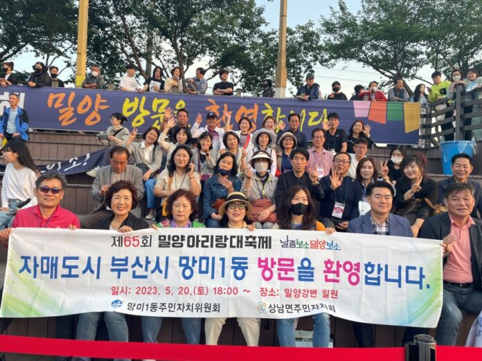 밀양시 삼문동 주민자치회(회장 신용규)는 제65회 밀양아리랑대축제를 맞아 자매결연도시인 양산시 양주동 주민자치회(회장 우종국)와 상호 우호 증진을 위한 자매결연 교류 행사를 가졌다고 20일 밝혔다.