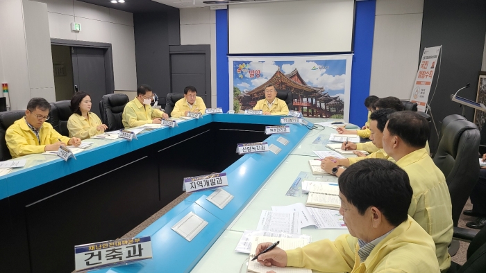 ▲박일호 밀양시장 주재로 관련부서장들이 호우경보에 따른 재해사전예방을 위한 대책회의를 하고 있다.