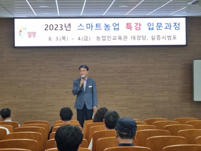 이번 특강은 최근 스마트농업으로의 전환이 빠르게 진행되고 있는 만큼 밀양시 스마트팜 도입의 견인역할을 할 수 있는 농업인을 양성하고자 마련한 스마트농업 입문 과정이다.