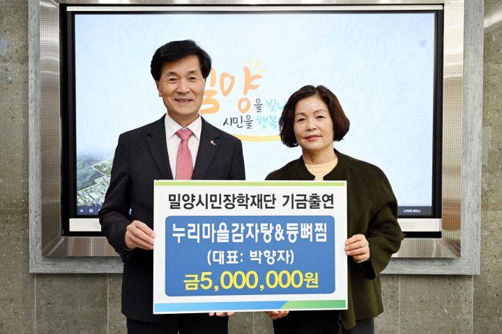 [경상뉴스=김용수 대기자](재)밀양시민장학재단(이사장 안병구)은 지역 인재 양성을 위한 따뜻한 장학금 기탁 행렬이 이어지고 있다고 밝혔다. 4일 누리마을감자탕&등뼈찜(대표 박향자)에서 500만원, 귀촌 임업인 문신수 씨가 500만원, 대한전문건설협회 경상남도회(대표 김주생)에서 300만원을 각각 기탁하며 미래 인재 육성에 뜻을 함께했다.