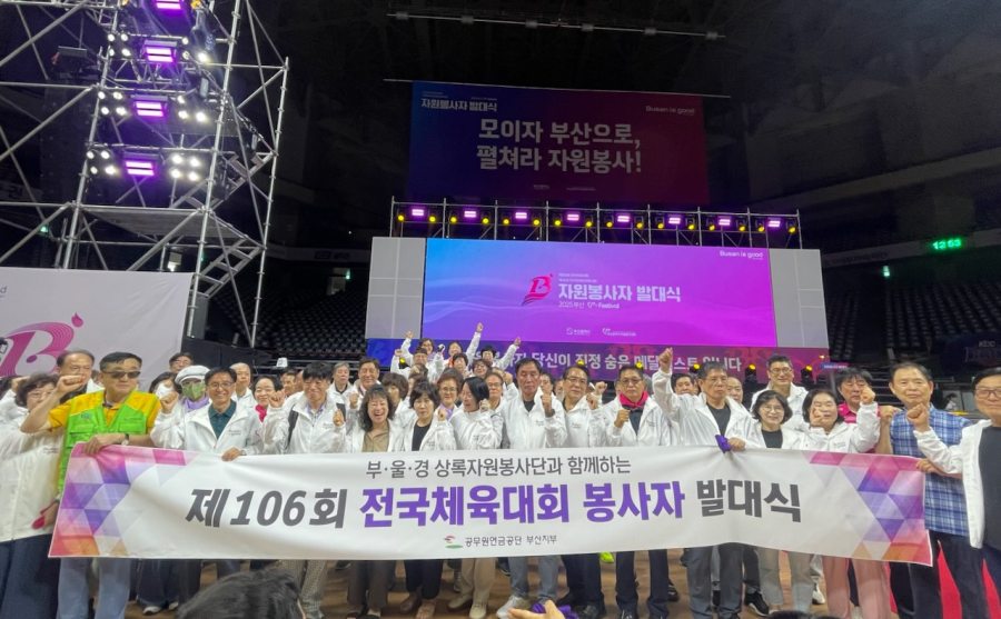[경상뉴스=조정환 기자]공무원연금공단(이사장 김동극, 이하‘공단’) 부산지부는 지난 17일 오후 부산 사직운동장에서 개최된 제106회 전국체육대회 및 전국장애인체육대회(이하 ‘전국체육대회’) 자원봉사자 발대식에 참석했다.