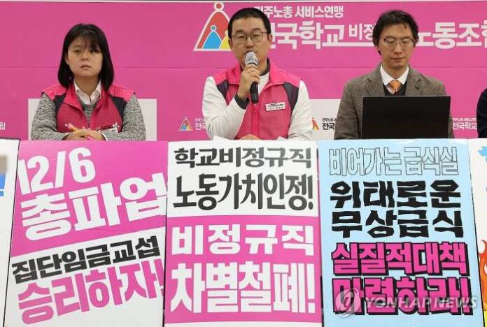 [경상뉴스=민태식 선임기자]급식과 돌봄 업무를 담당하는 학교 비정규직 노동자들이 오는 6일 하루 전면 총파업을 선언했다.