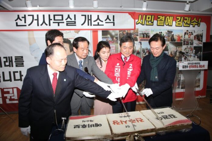 [경상뉴스=김영수 기자]진주시장 선거에 출마한 김권수 예비후보 선거사무소 개소식이 시민과 당원, 지역 인사들이 참석한 가운데 성황리에 개최됐다.