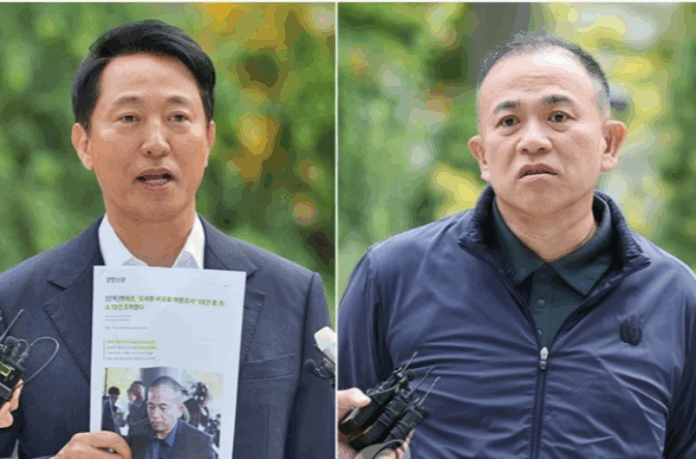 [경상뉴스=민태식 선임기자]오세훈 서울시장과 명태균 씨가 8일 민중기 특별검사팀에 함께 출석해 ‘여론조사비 대납 의혹’ 관련해 8시간 가량 대질조사를 받았다.