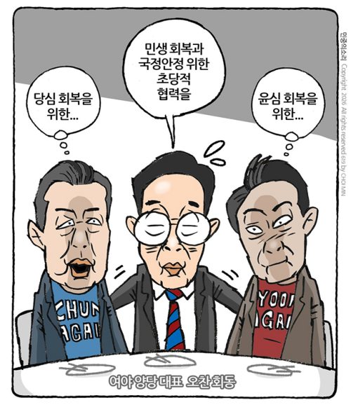 ▲최민의 시사만평 – 어쨌든 한자리에 ⓒ최민 논설위원·시사만화가