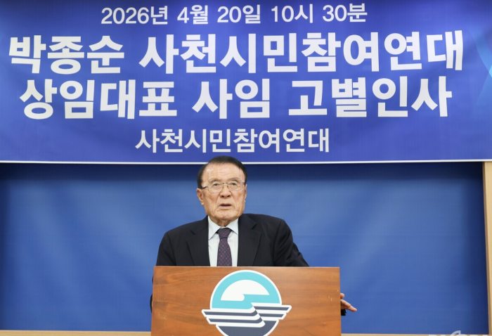 박종순 대표는 20일 오전 10시 30분 사천시청 브리핑룸에서 기자회견을 열고 “차갑고 매섭게 추웠던 계절은 가고 따뜻한 봄날이 왔다. 어렵고 파란만장했던 상임대표직을 내려놓는다”고 밝혔다.