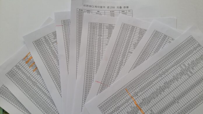 ▲사천바다케이블카, 홍보비 20여억원 집행내역.