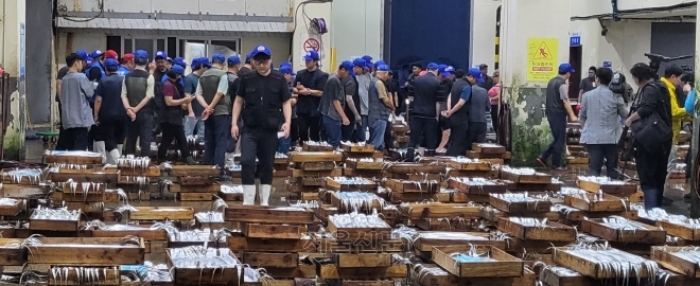 이곳 도소매 상인들은 “방류 하루 전인 어제는 떼지어 온 손님들이 몇 상자씩 사 갔다”면서 “국민들이 얼마나 불안하면 막판 사재기를 하겠느냐”고 했다. 한 상인은 “어제 냉동 갈치 구매가 많아 평소보다 50%는 더 팔았다”며 “마지막 대목이었지 않나 싶다”고 토로했다.