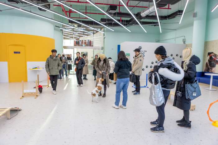 ▲선샤인 밀양 테마파크 방문객들이 반려동물지원센터 내 독플레이 정글을 이용하고 있다.
