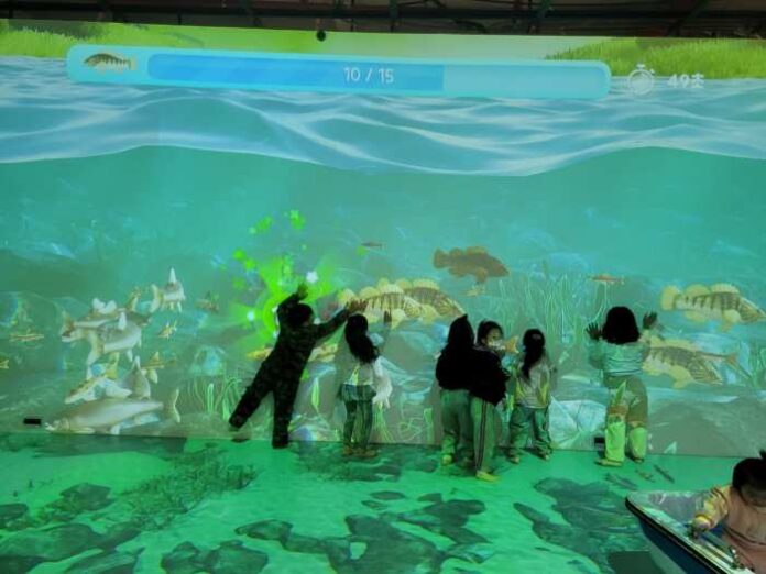 ▲어린이들이 농촌 테마공원 내 에코팜빌리지에서 물고기잡기 놀이를 하고 있다.