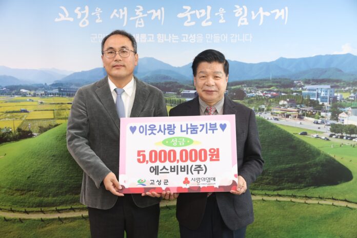 [경상뉴스=김용수 기자]에스비비(주)(대표 이태형)는 2월 8일 고성군청을 방문해 어려운 이웃을 위한 성금 500만 원을 전달했다.