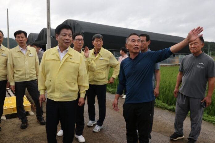 이상근 군수는 고성시장, 동해면 장좌천 제방 붕괴 현장, 동해면 장기리 군도14호선 제방 유실 현장, 고성읍 죽계리 소재 부추 농가를 잇따라 찾아 피해 상황을 직접 살폈다.