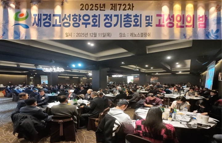 [경상뉴스=김용수 대기자]재경고성향우회(회장 김영수)는 12월 11일, 서울시 성동구 레노스블랑쉬 연회장에서 2025년 제72차 정기총회 및 고성인의 밤 행사를 개최했다.
