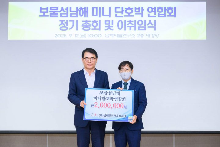 같은 날 보물섬남해미니단호박연합회는 마늘연구소에서 열린 ‘보물섬남해미니단호박연합회 정기총회’에서 인재육성기금 200만원을 기탁했다. 박현수 회장은 “예측하기 어려운 기후변화로 농사가 갈수록 힘들지만, 교육만큼은 안정적이고 풍요로워야 한다는 마음으로 회원들이 마음을 모아 기탁한다.”라고 전했다. 보물섬남해미니단호박연합회는 총 4회에 걸쳐 800만원의 인재육성기금을 기탁한 바 있다.