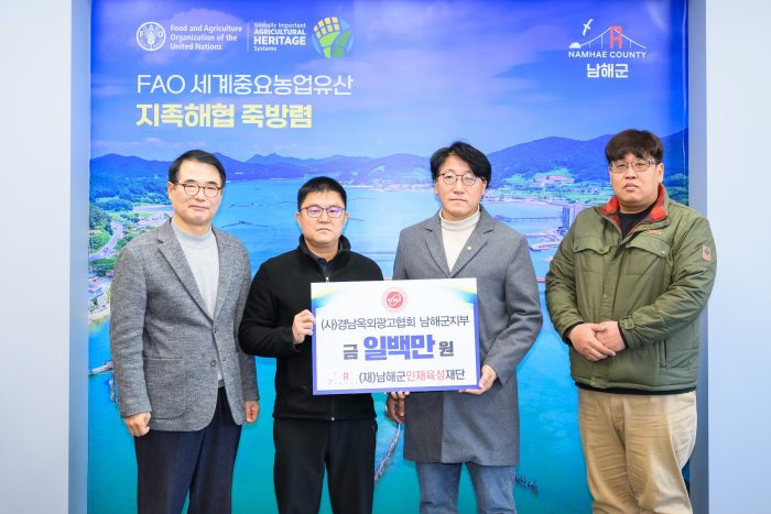 경상남도 옥외광고협회 남해군지부는 2012년부터 꾸준히 인재육성기금을 기부해 왔으며, 이번 기탁으로 총 700만 원에 달하는 기금을 전달하며 지역 후학 양성에 변함없는 애정을 보이고 있다.