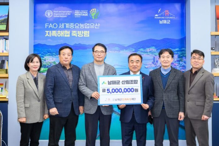 경남 남해군산림조합에서 인재육성기금 500만원을 지난달 29일 기탁하였다.