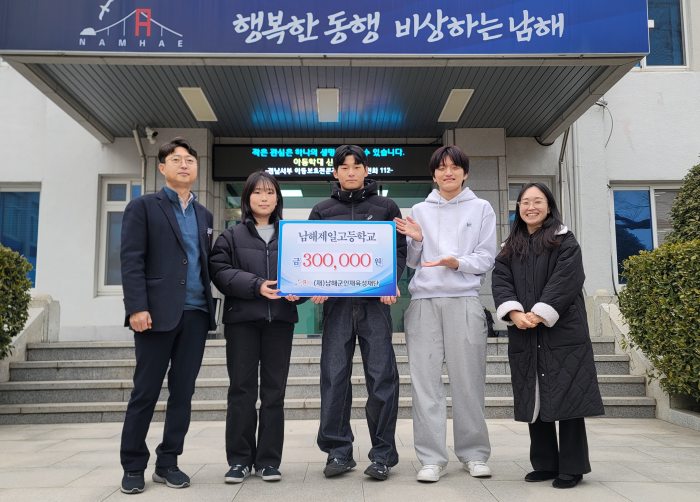 남해제일고 학생들은 “지난 2025년 연말에 열린 학교 축제 ‘메나리제’에서 간식 판매와 체험 활동비를 100원, 500원으로 소액으로 책정해 운영했고, 그 과정에서 모인 수익금을 전액 기부하고자 한다. 많은 학생들이 함께 참여해 모은 마음이 지역 초등학생들이 더 큰 꿈을 키워나가는데 작은 씨앗이 되기를 바라는 마음으로 기부한다.”라고 밝혔다.