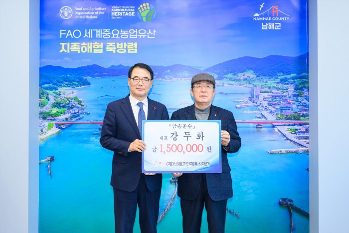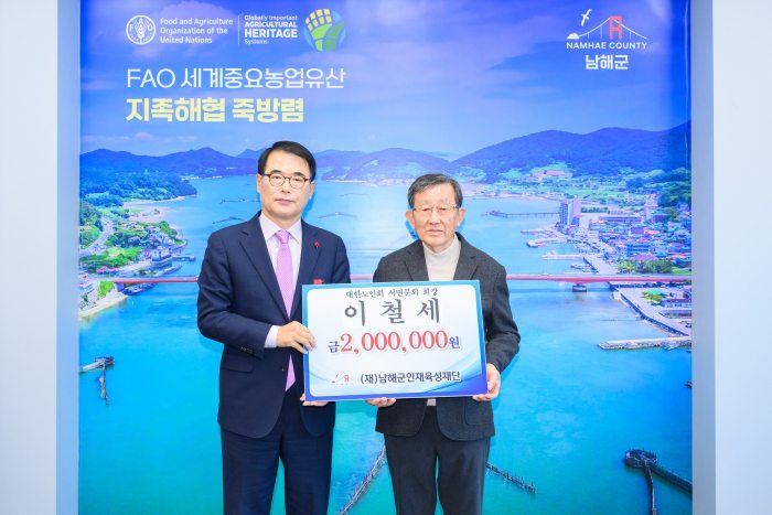 지난 12일 이철세 서면노인회 분회장은 인재육성기금 200만 원을 기탁하였다. 이철세 회장은 “우리 어른들이 삶의 경험과 지혜를 통해 지역 사회의 든든한 버팀목이 되어주어야 한다고 생각한다”며 “남해지역 아이들의 미래가 늘 밝고 건강하기를 진심으로 응원한다.”고 밝혔다.